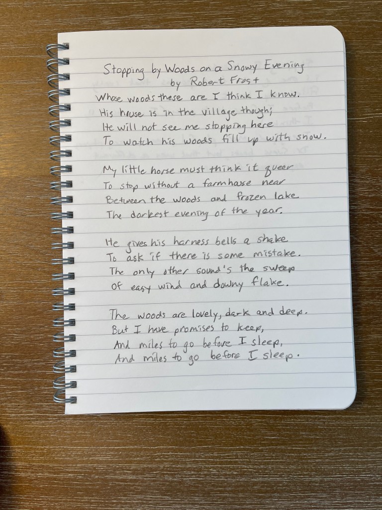 Here’s a favorite of mine. When I was growing into adolescence, I liked to read one of my parents’ books of poems by Robert Frost.
